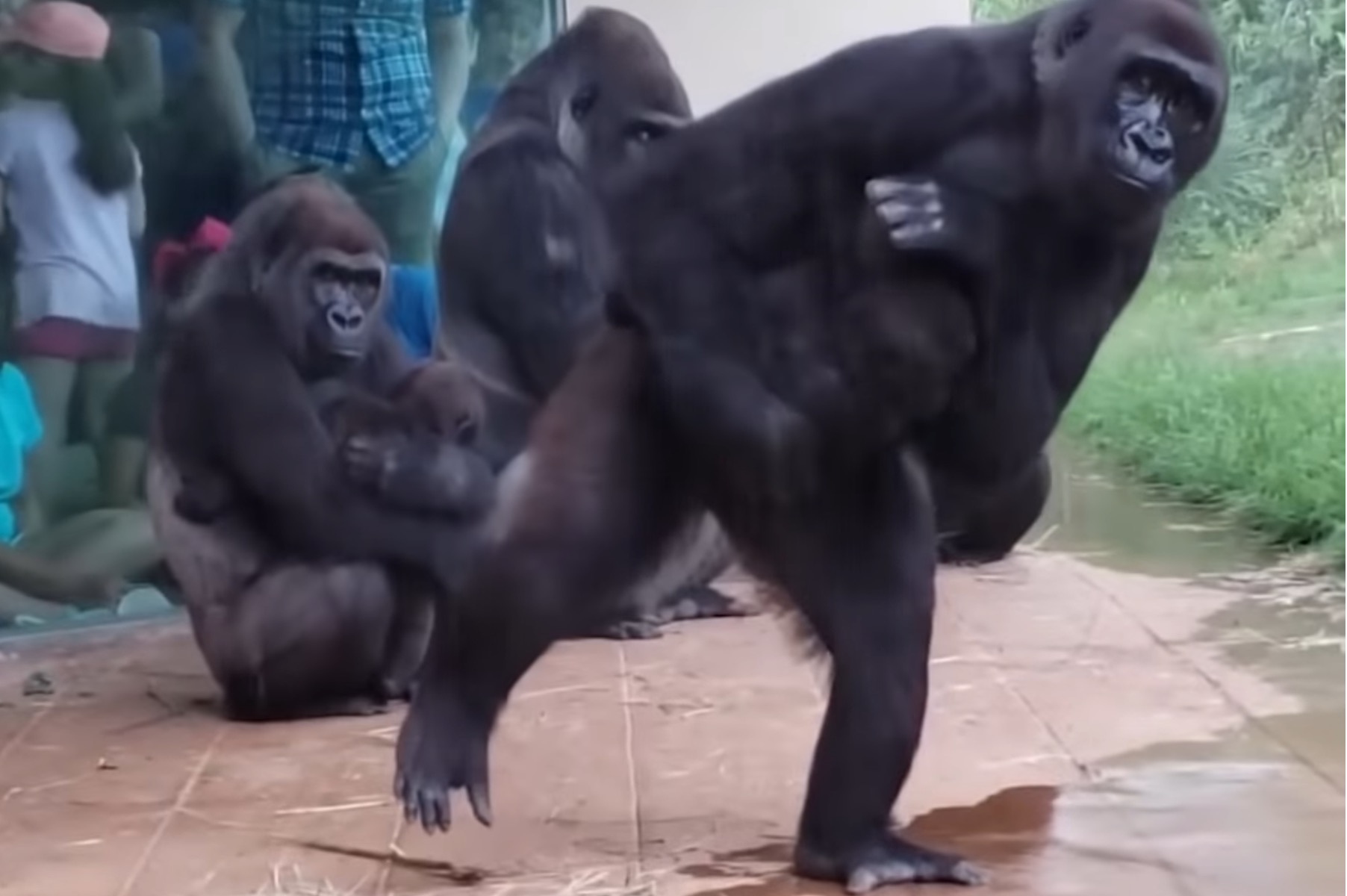 Gorillas at a South Carolina zoo where recorded trying to take shelter from the rain!