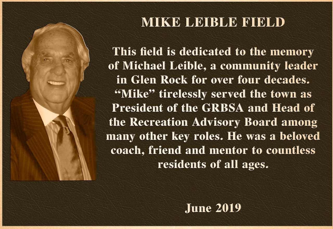 The “Mike Leible Field” in Glen Rock New Jersey is dedicated in his honor. Mike was a pillar of the community and for many years he was President of the Glen Rock Baseball Association as well as President of the Recreation Department. He also headed up the Borough’s Youth Guidance Council.