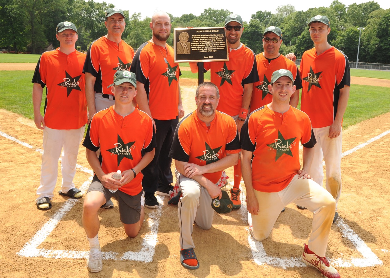 Attending the ceremony were numerous New Jersey dignitaries and a multitude of the late Mike Leible’s friends who came from near and far. The Glen Rock Softball League defending champion Rick’s Cabaret team played an exhibition game on the new field, and the Leible family baseball tradition continues. Mike’s son Chris is the squad’s first basemen.