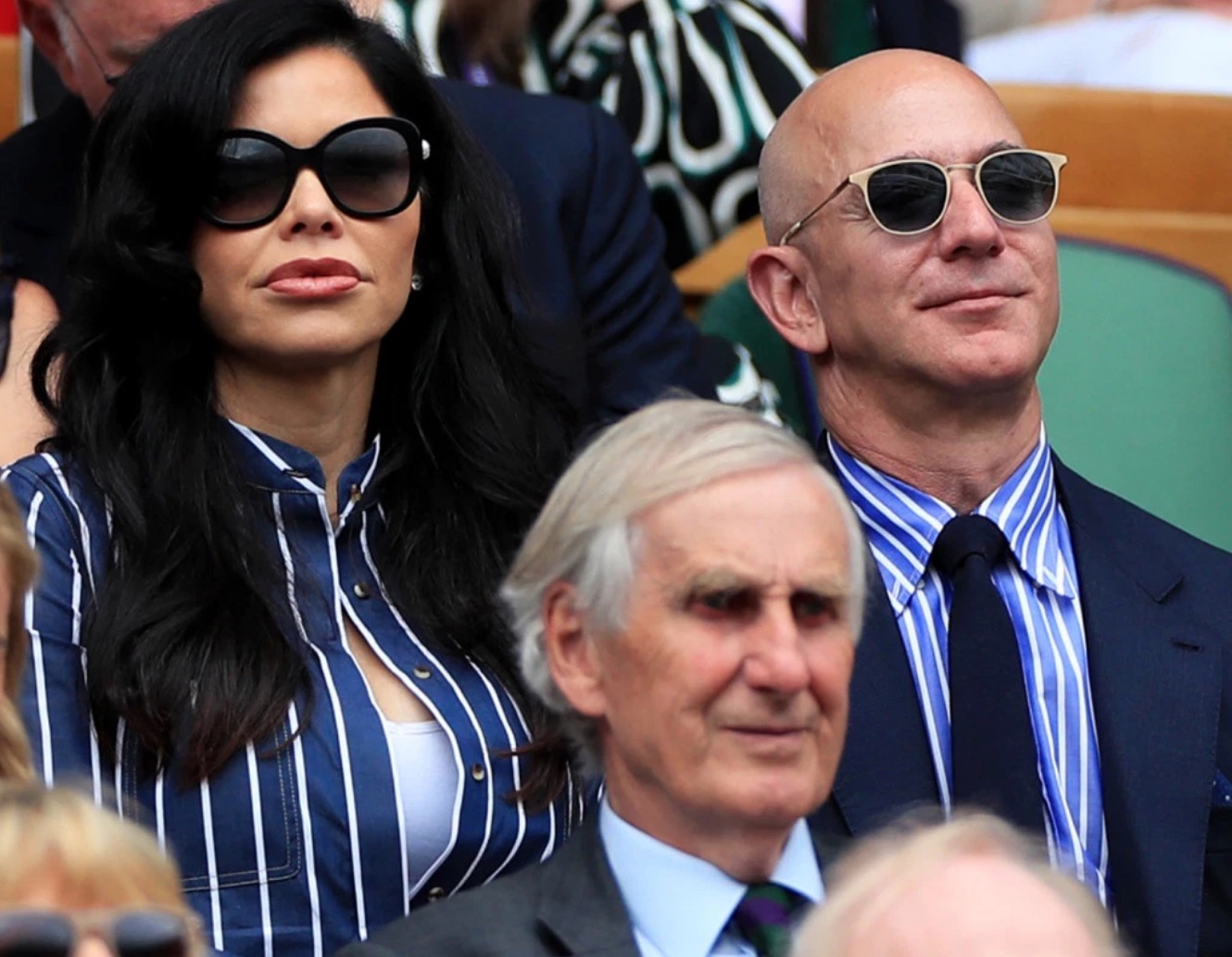 As Switzerland’s Roger Federer and Serbia’s Novak Djokovic competed in the men’s singles final, Jeff Bezos and Lauren Sanchez were spotted in the stands at the All England Lawn Tennis & Croquet Club in London.