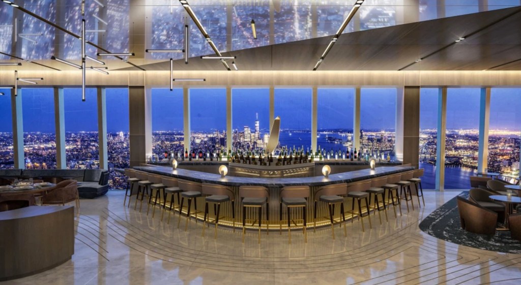 Peak is one floor higher than Edge, the western hemisphere’s highest outdoor observation deck, also set to open in March. Even on a cloudy day, I could see everything from the Palisades to the Verrazzano-Narrows Bridge and the ocean beyond from the restaurant’s windows.