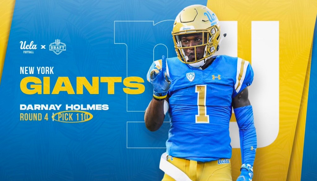 Big Blue picked UCLA cornerback Darnay Holmes with the No. 110 pick in the fourth round, a day after taking Alabama safety Xavier McKinney in the second round.