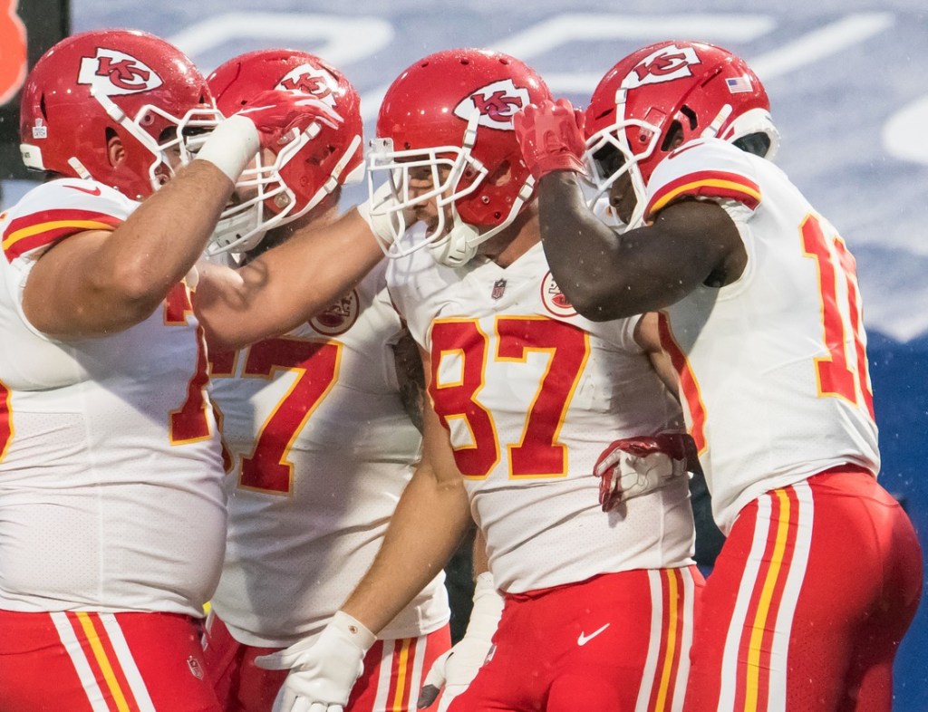 Tyreek Hill had 98 yards receiving and two touchdowns, Travis Kelce finished with 109 yards and another score, and Mecole Hardman and Demarcus Robinson also reached the end zone as the Chiefs (7-1) gave Andy Reid his 229th win to move into a tie with Hall of Fame coach Curly Lambeau for the fifth most in NFL history.