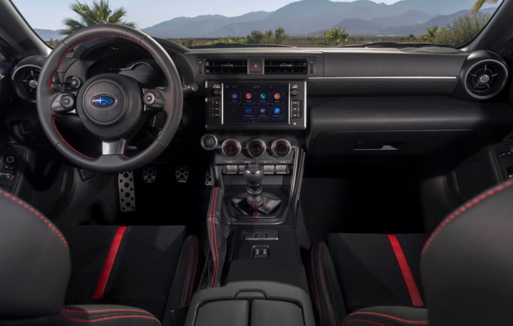 A new customizable 7-inch digital dashboard is a focal point with the tachometer front and center featuring an integrated digital speedometer readout. To the left of the tach is a programmable meter that can show amps, water temp, or a g-meter. There’s also a new 8-inch touchscreen, and standard Apple CarPlay and Android Auto. Subaru’s EyeSight Driver Assist Technology is only available on automatic models for right now.