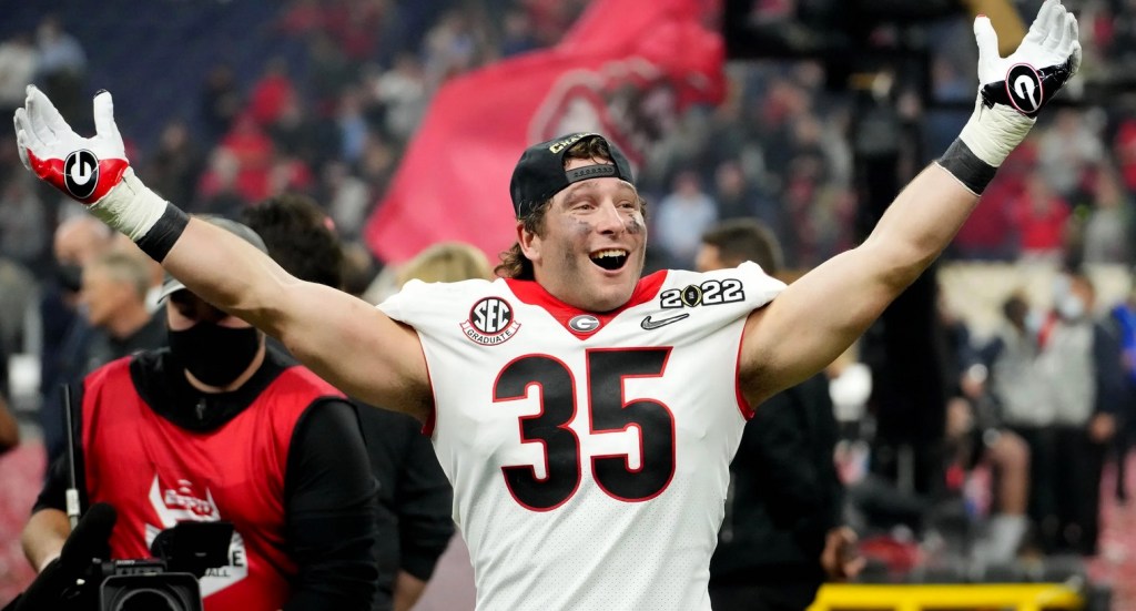 The play brought Georgia quarterback Stetson Bennett, a former walk-on, to tears on the sideline, and as soon as the clock expired, Georgia’s assistant coaches and staff bolted to the elevators in the shaking press box at Lucas Oil Stadium, with one yelling, “Hell yeah!” as they thundered out cheering together.
