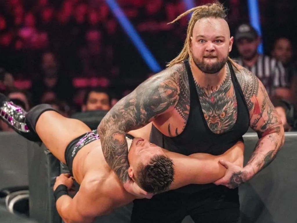 After Matt Riddle submitted Seth Rollins in the Fight Pit main event, the lights went out as he walked back to the stage with special referee Daniel Cormier as Michael Cole was signing off on the broadcast. Wyatt’s voice could then be heard sing his signature “He’s got the whole world in his hand” and spotlights hit people dressed as each of his former “FireFly Funhouse” character and Wyatt’s former Fiend character.