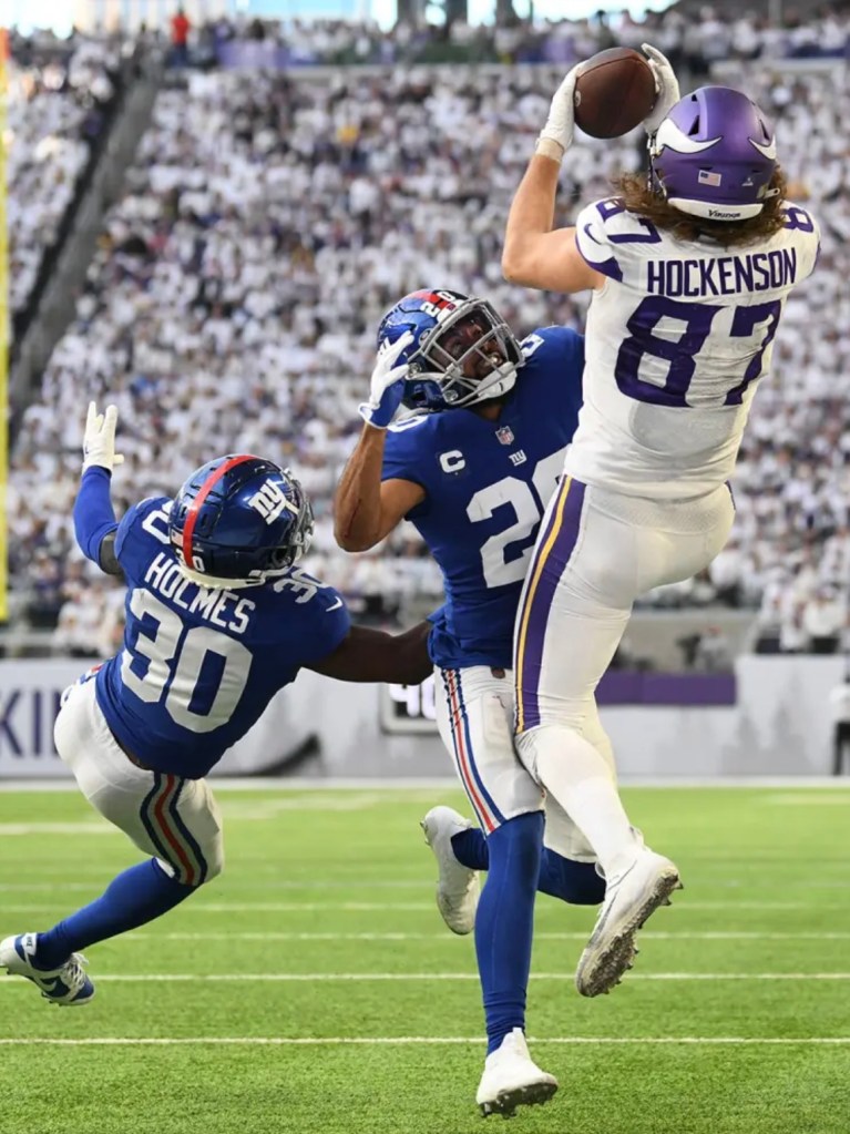 Daniel Jones was 30-for-42 for 334 yards, but it was a struggle all day for the Giants to find points. Kirk Cousins threw three touchdown passes and the Giants had no answers against Jefferson (12-133) and tight end T.J. Hockenson (13-109), who had two scoring catches.