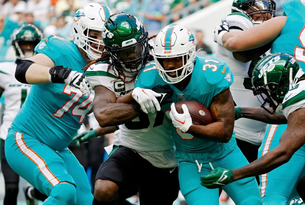 Skylar Thompson started for the Dolphins with both Tua Tagovailoa and Teddy Bridgewater out injured. Thompson went 20-for-31 with 152 yards. There were zero touchdowns scored in the game.