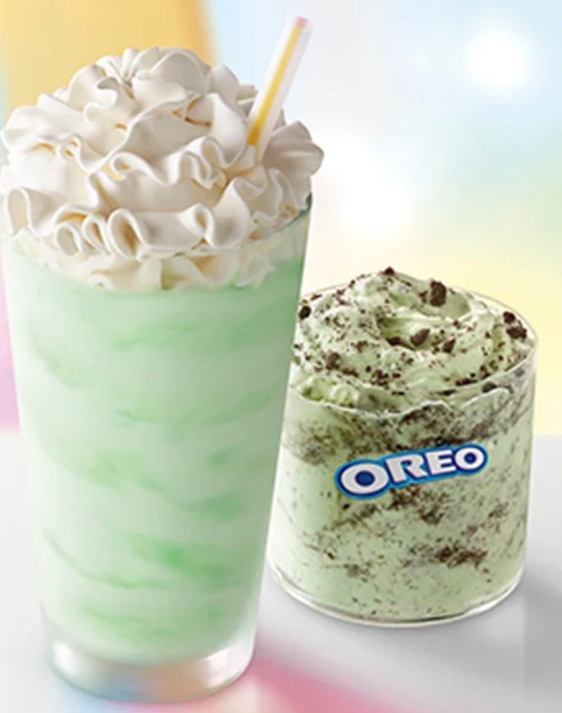 Meanwhile, Oreo Shamrock McFlurry, which made its nationwide debut in 2020, features vanilla soft serve blended with Shamrock Shake flavor and Oreo cookie pieces.