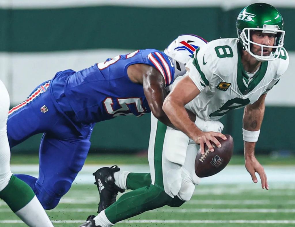 New York Jets quarterback Aaron Rodgers appeared on ESPN with Pat McAfee after undergoing surgery to repair his torn Achilles tendon.