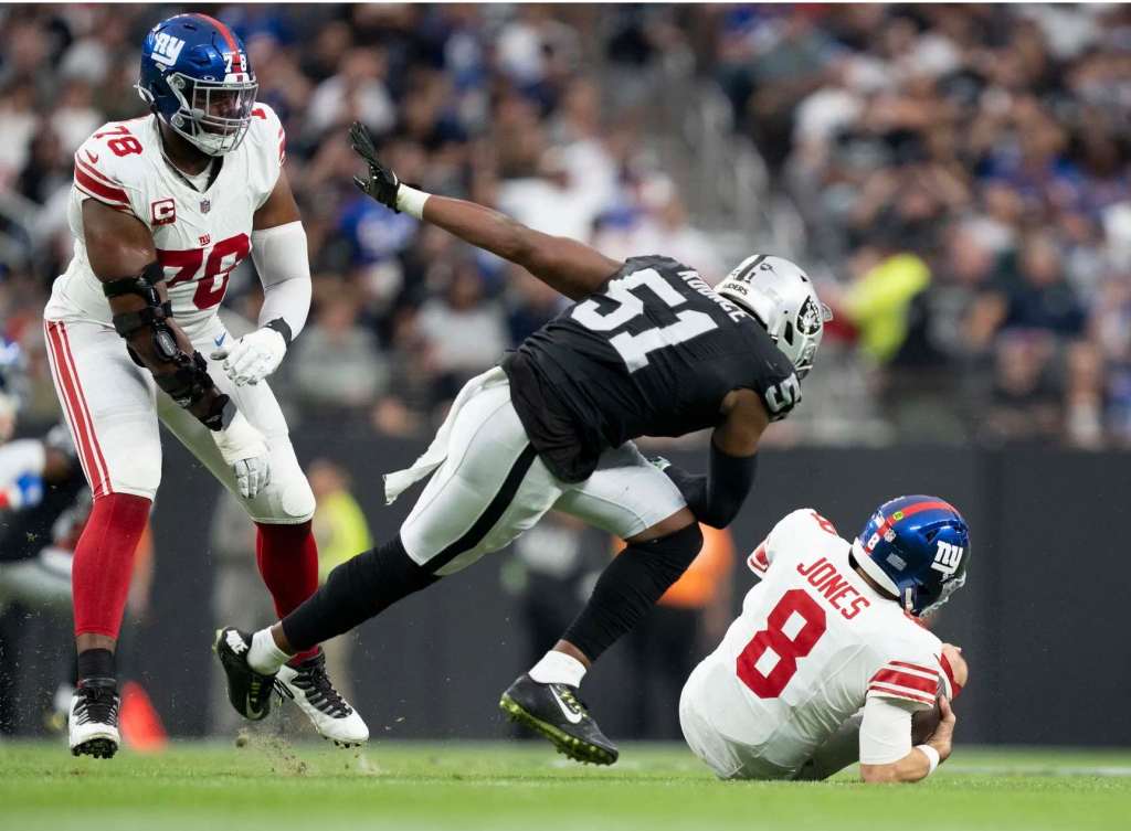 The Giants welcomed back Daniel Jones for Sunday’s game against the Raiders but the 26-year old quarterback did not make it out of Allegiant Stadium unscathed.