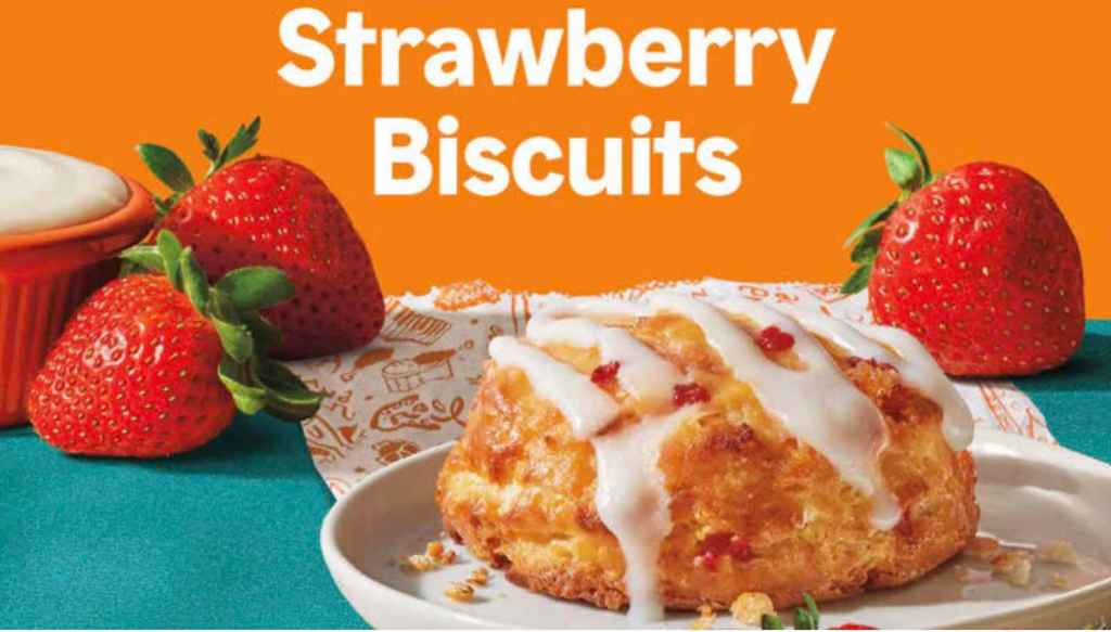 Strawberry Biscuits can be enjoyed on their own for a suggested price of $1.79 each or you can opt for a deal with two biscuits for $2.99 or four biscuits for $5.39.