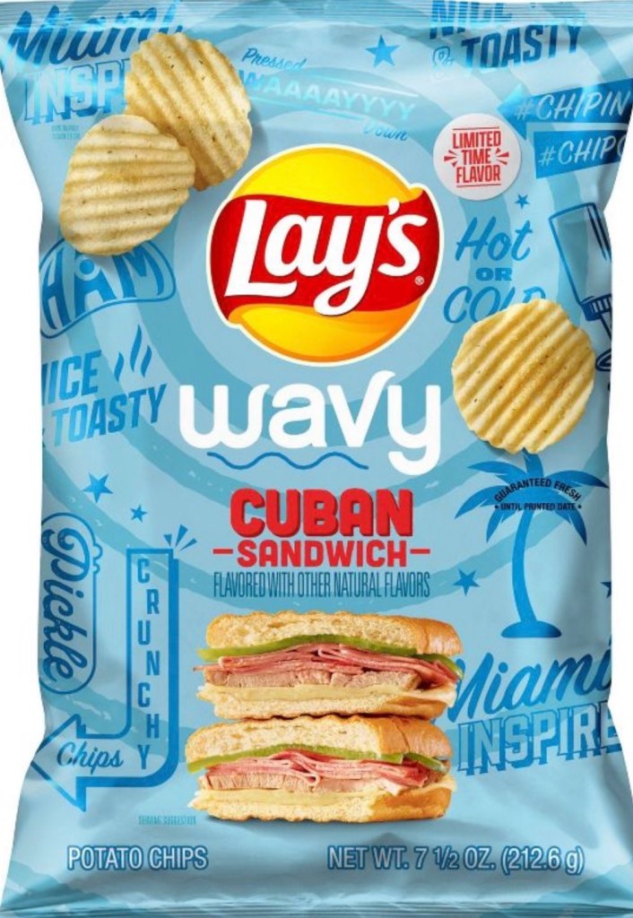 - Lay’s Wavy Cuban Sandwich combines the traditional flavors of pork and cheddar cheese in a fresh take on a classic sandwich.