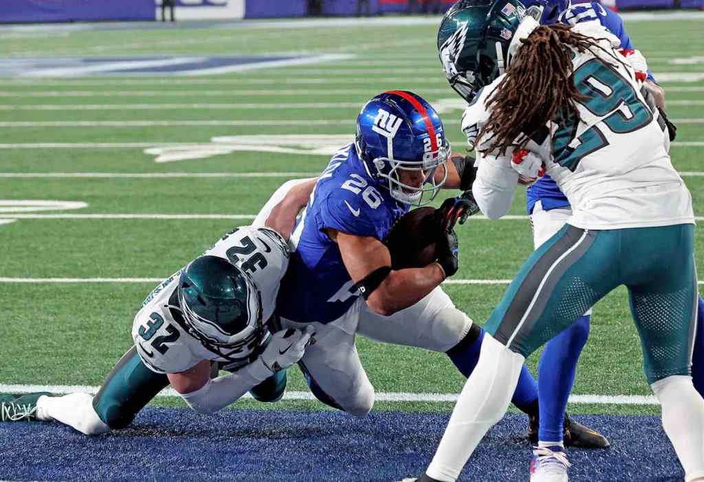 The Eagles pulled quarterback Jalen Hurts and several starters in the second half. Saquon Barkley, in what could be the curtain call on his six-year stay with the Giants, rushed for two touchdowns.