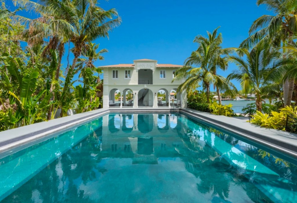 The four-bedroom waterfront villa, built in 1922 at 93 Palm Ave., comes with a pool and a two-story cabana.