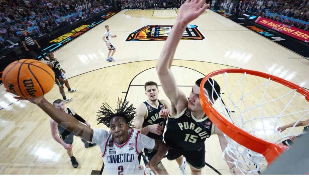 Four of the Huskies’ starters scored in double figures, with guard Stephon Castle scoring 15 points, center Donovan Clingan recording 11 and guard Cam Spencer scoring 11 points, while also recording a team-best eight rebounds. Purdue senior Zach Edey, the two-time reigning National College Player of the Year, recorded a game-high 37 points and 10 rebounds.
