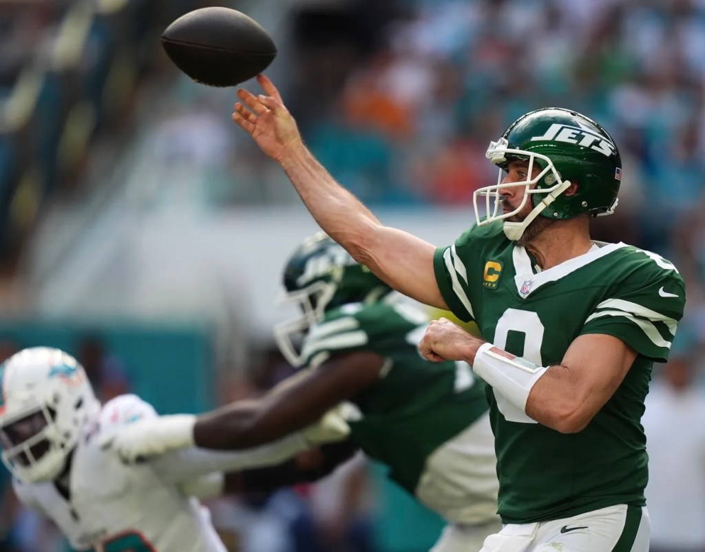 Rodgers and the Jets nearly pulled off the win on Sunday in South Florida. They took a 23-15 lead into the fourth quarter, and took a three-point lead after Anders Carlson drilled a 42-yarder with 52 seconds left on the clock.