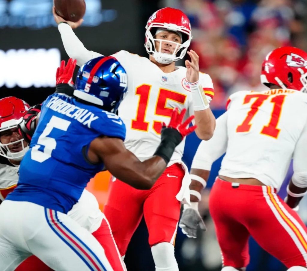 Star quarterback Patrick Mahomes completed 22 of his 37 pass attempts for 224 yards and a touchdown against the Giants’ secondary.