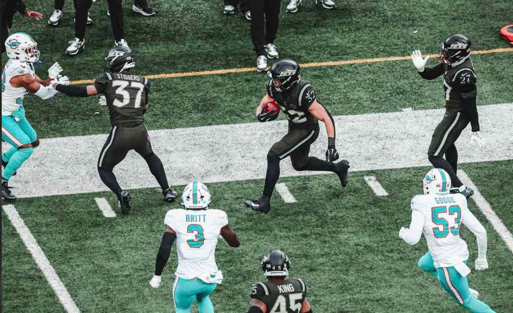Isaiah Williams briefly gave the Jets hope with a 78 yard punt return to cut the Dolphins lead to 21 – 7. It was the lone bright spot for the Jets.