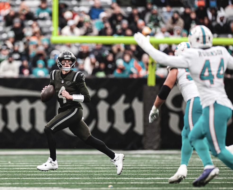Old friend Zach Wilson came on in mop up duty for the Dolphins. It was his first appearance in an NFL game since he left the Jets. Wilson led a late field goal drive to add insult to injury and bring the final score to 34 – 10.